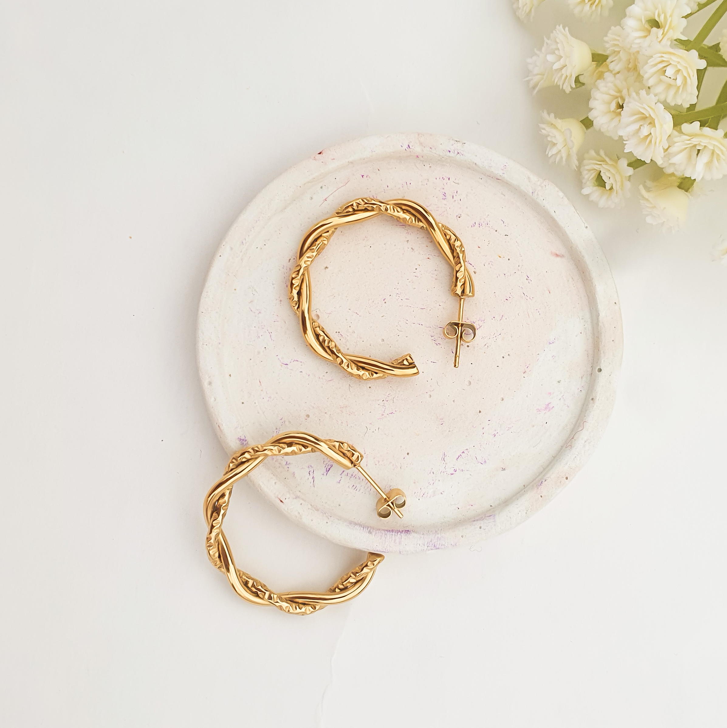 Material: Acero de Titanio bañado en Oro de 18K Hipoalergénico, no causa irritación o alergias. Garantía de calidad, duradero, anticorrosivo.